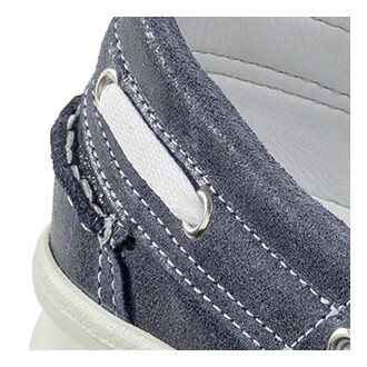Sportlicher ESD Berufsschuh aus blauem Rindleder mit weichem Nappa-Lederfutter, bequemes Komfort-Fussbett, rutschhemmende PUR-Sohle, antistatisch (ESD) Geprüft nach EN ISO 20347 O1 SRC und EN 61340-5-1 ESD
