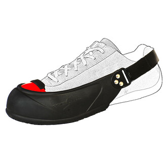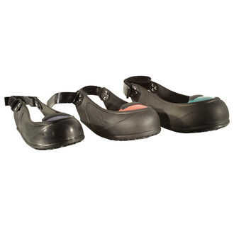 Safety overshoe, ideal for visitors or short use, robust and large titanium aluminium caps, hygienic and easy to use, anti-slip rubber sole, in three different sizes with colour coding.