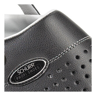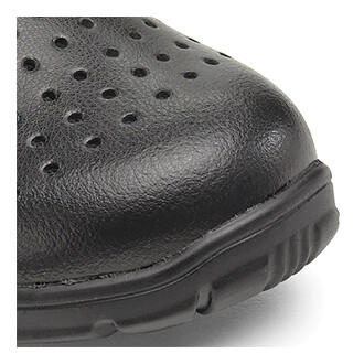 Mule ESD sportive à perforations, tige en microfibre, noir, lanière de talon rabattable vers l'avant, doublure textile DRY-TEC souple, semelle intérieure PUR confortable, semelle PUR antidérapante, antistatique, protection ESD max. 35 M-Ohm.